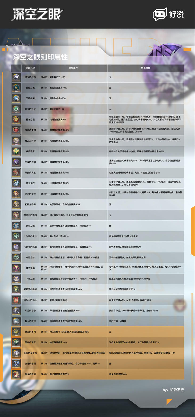 整理了一下深空之眼的全刻印属性