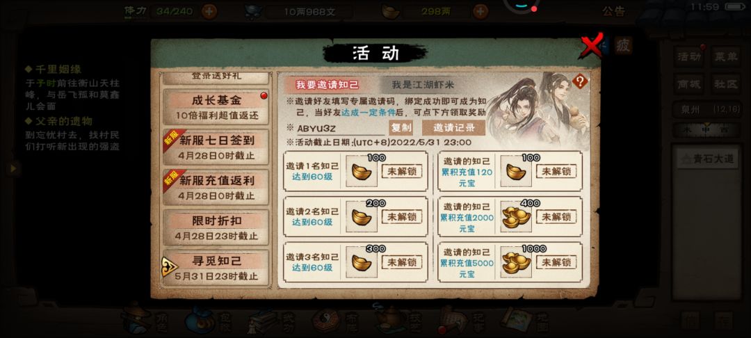 7、后面想到再补充,各位觉得有用请填我的邀请码ABYU3Z,填我邀请码的朋友,50级梅花桩成就搞不定可以帮你