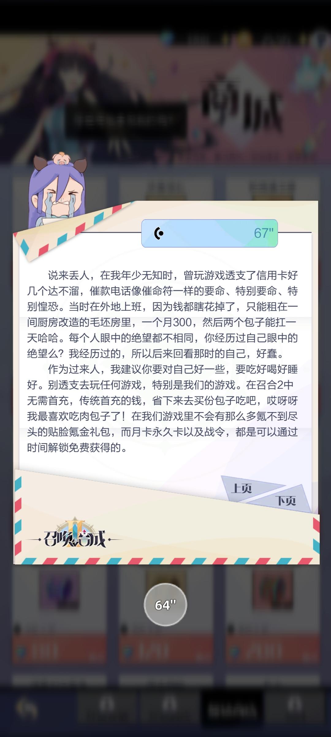 看完这段文字后,真的感觉炸多少次都无所谓了,再重启多少次也不会消减对召合游戏的喜爱与期待。一个充满爱和关怀的游戏,会差到哪里去呢?(顺便一说,玩召合2之前真怕把召合1的BGM换掉,还好没有,还是熟悉的感觉!!!)