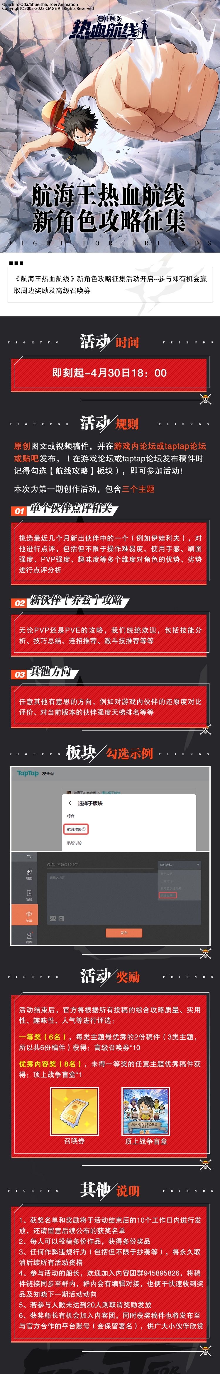 恭喜以上玩家获奖,请获奖的船长,在5月16日18:00之前,添加活动小助手QQ1520663290,并备注自己的【论坛昵称】,以便我们进行发奖。一定要尽快添加噢~超过领奖时间视为自动放弃奖品同时,稿件也将公示一周,如果有发现任何问题,欢迎同样添加活动小助手进行举报~