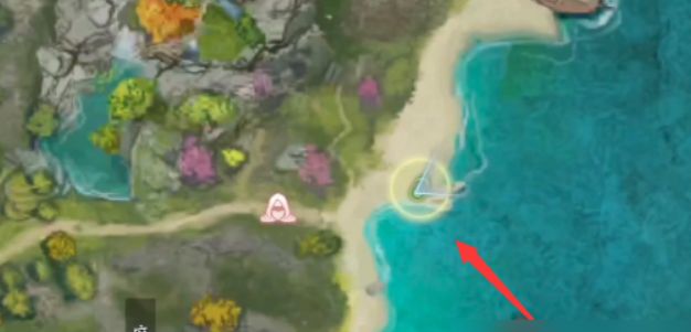 2、点击鱼骨之后,来到游戏坐标(853,609)处的海岸线处,这里有两块礁石。
