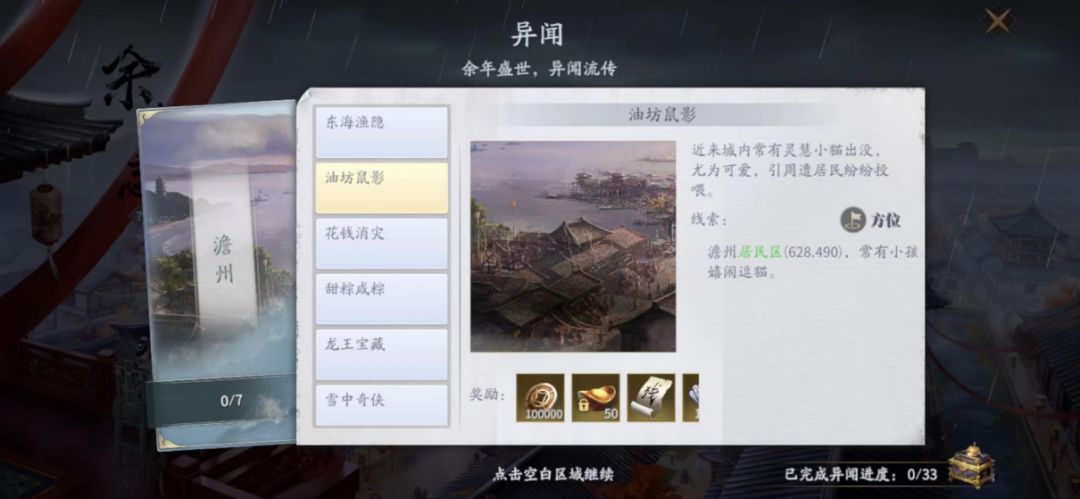 开启线索:澹洲居民区(628,490)常有小孩嬉戏逗猫