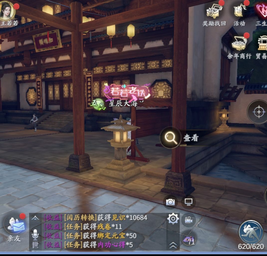 奖励:50绑定元宝、5张内功心得、残卷、1万阅历