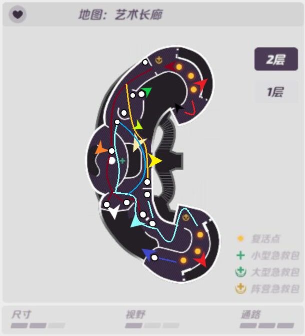 接着是2层。两边的路线是对称的,这边只表示了1方。同样的双方路线会有许多重合的地方,所以2层是刚枪激烈的一层。