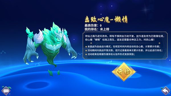 修仙之路乃逆天改命,稍有不慎则会万劫不复,如今道友修为已致臻化境,但心魔“懒惰”也随之而生!请道友们整合神念之力,在规定时间内自由对抗心魔。当然,瓶儿也为对抗心魔的道友们准备了神念元晶、灵元晶等丰厚奖励!