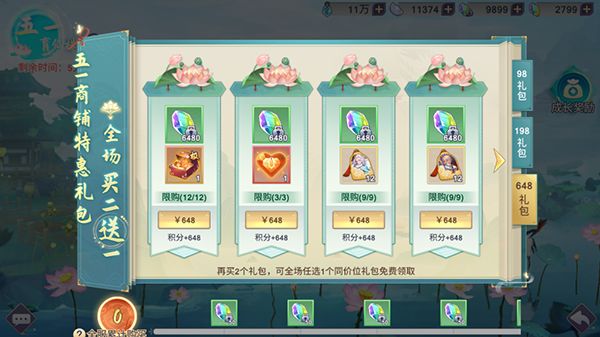 瞧一瞧看一看~走过路过不要错过~(大喇叭)五一商铺开张啦!每日都有特惠礼包上架,此外更有买二送一活动,有需要的道友可不要错过!