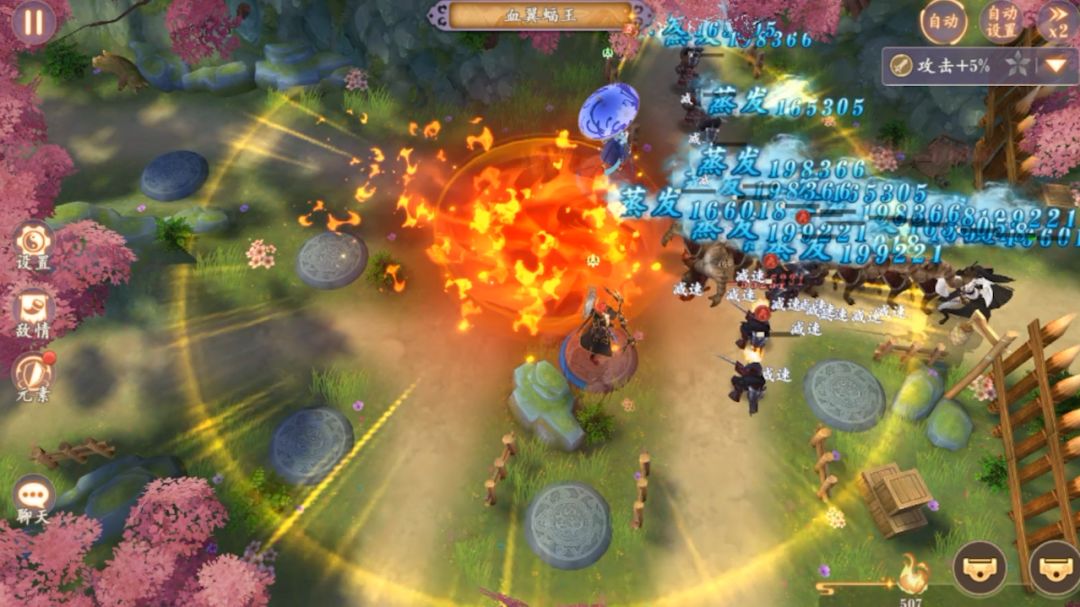 最后再展示下加上技能特效的战斗画面吧,“炎来,烧尽”“火焰,吞噬一切”这些都是羿的战斗台词,在特效设计上,各个技能的命名及特效展示都需要围绕其角色故事背景进行设计。