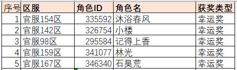 1、幸运奖5名:费列罗巧克力一盒;勾玉*1888;召唤卷轴*18