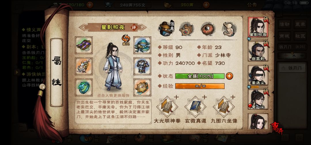 现在人在少林,水上漂已经学完了,其他都还没搞,很快,,,等我把药浴菩提子装备和其他两门镇派搞定就一给路打油跑回太乙享受至尊体验喽……………