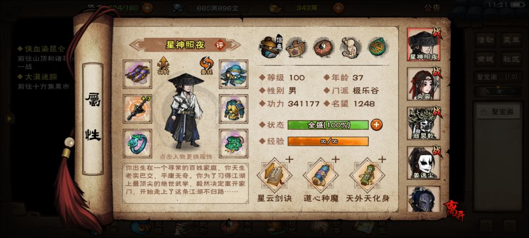 如你所见,通关夜天子解锁第五秘技,然后通关武神殿解锁了合道,还把鱼肠剑拿了,现在主角的战力不用假账也有34万