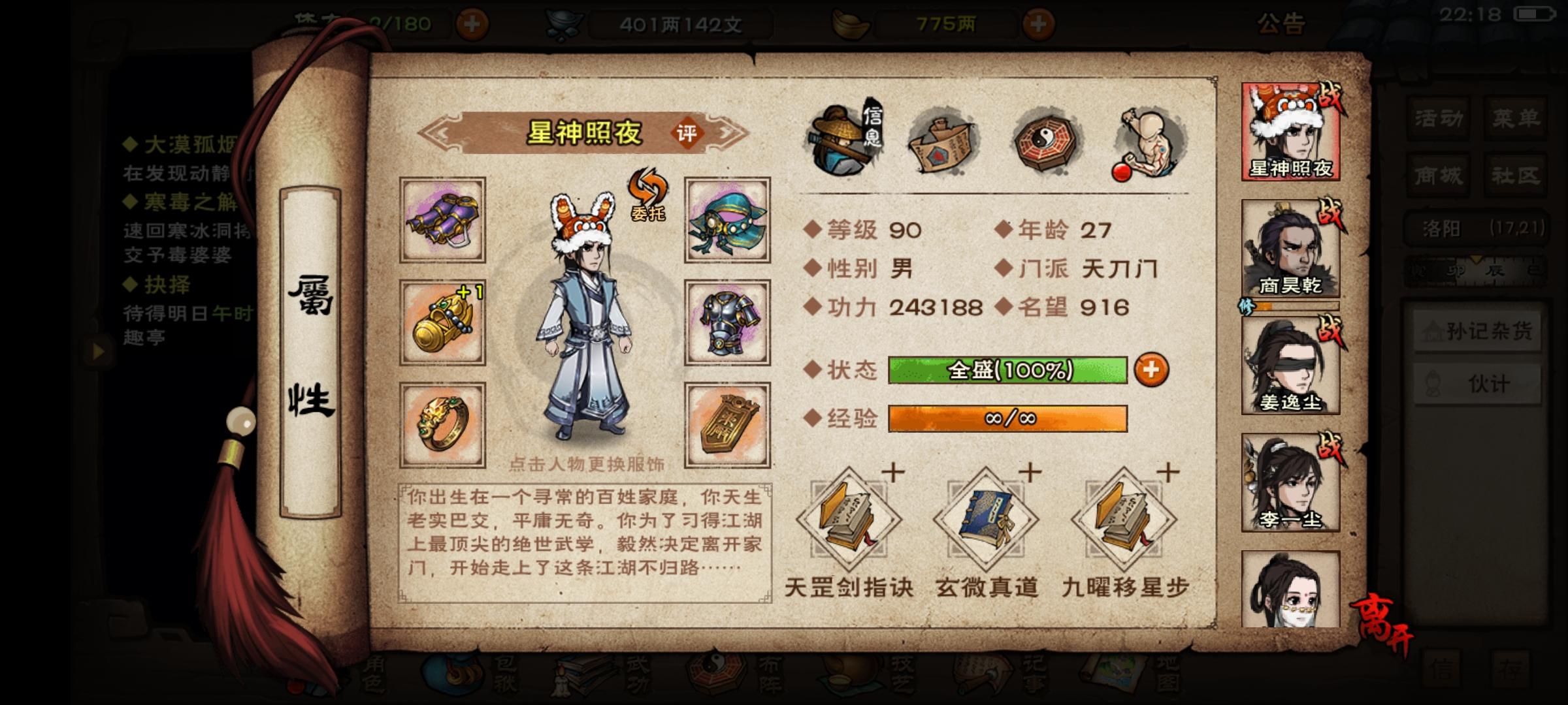 然后就是燕王府已经开速刷很久了,还剩最后一把钥匙和装备没掉,吐了。其他的一些杂七杂八的,一些新支线啊,老支线都有在做,以及去天刀门进修,主要是为了拿孤傲意,之后计划去剑王阁拿浣剑术,然后是又改名了,,,,之前玩过一个号没玩也没删,现在找不到了,然后就导致我现在直接用照夜两个字不行,就干脆在前面加个烟雨得了
