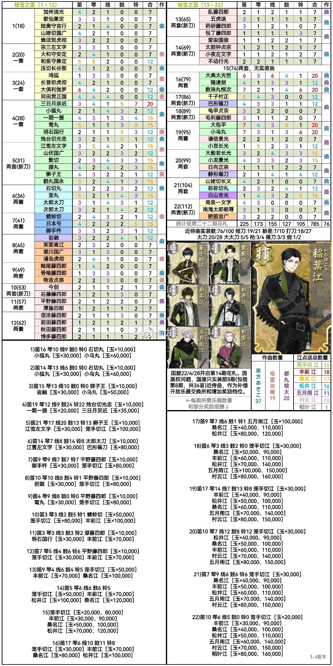 秘宝里目前为止(稻叶江)全乐器统计(仅乐器)无标注对应刀剑(主要是我实在懒得翻了)给各位等一个奇迹的婶婶们