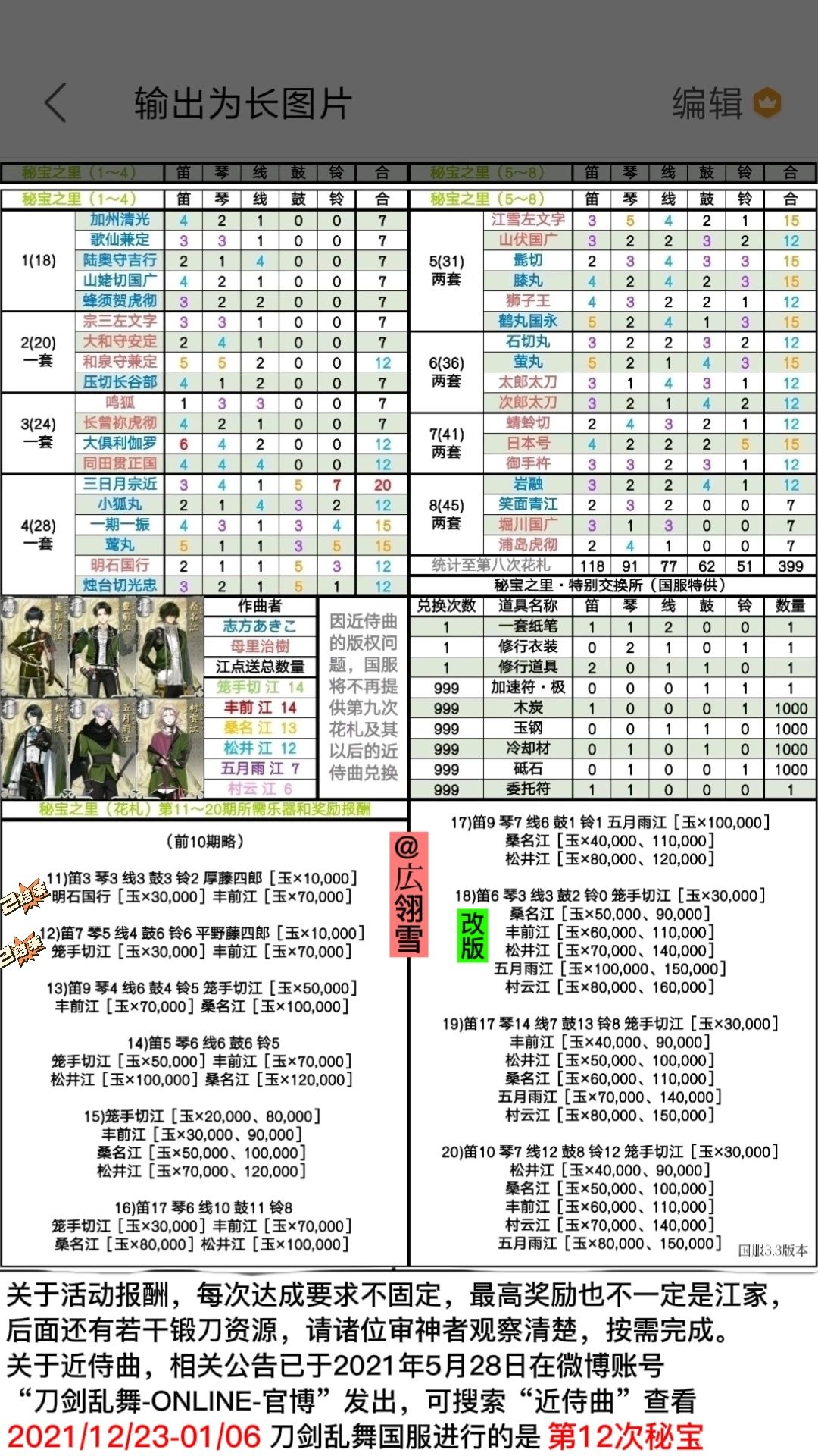 当然如果有好心婶婶愿意整理一下每回对应刀剑可以@我加进去~(在想p吃)