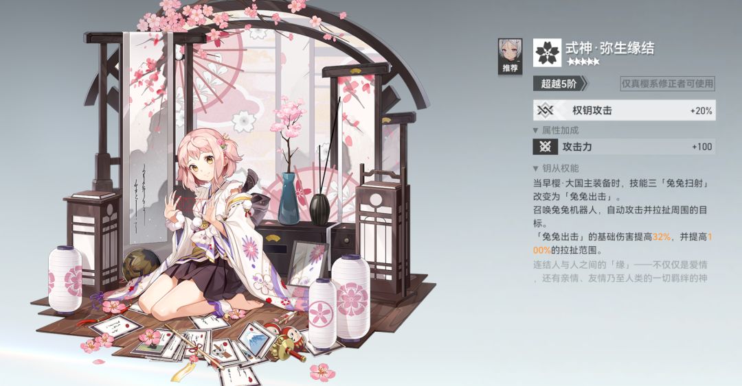 真樱大国主,一个全能型的远程修正者,优点是既能打输出又能打辅助,缺点是既打输出和打辅助的能力都不突出。