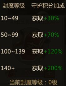 还有守护积分加成封魔等级越高,守护积分加成越高哦~