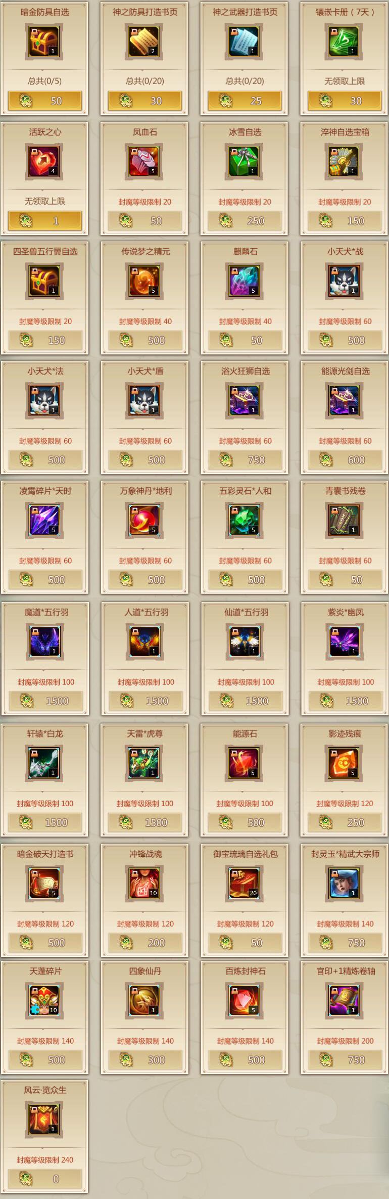 大家获得决战皇城勋章后,就可以在奖励兑换界面中兑换各种奖励了。要注意的是,不同的奖励兑换是有不同的封魔等级限制的。