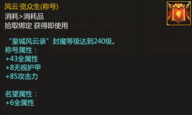 最终,当大家的封魔等级达到240级时,便可以获得称号—风云·览众生!