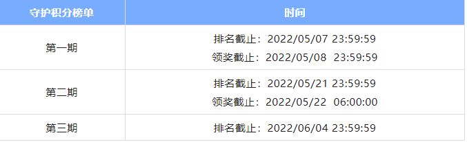 第一期截止日期为:2022/5/7/23:59:59第一期奖励领取截止日期限2022/5/8/23:59:59
