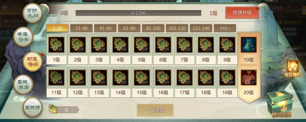 获取封魔战功,提升封魔等级,则是大家在封魔活动要做的另一个重要的任务了,封魔等级每提升1级,都会获得昭天令,同时到每10级会获得其他的稀有奖励。