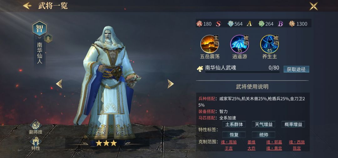 魂赵云作为最原始的魂将,独特的机制让他在各个版本中都能屈居上游,双系的免疫机制也能让他作为独特的克制将使用,军器和副将的加入让魂赵云有了更好的属性和更好的生存能力,配合廉颇可以通杀几乎所有武力将,克制于吉老仙更是让人青睐有加,当选天梯第八名。