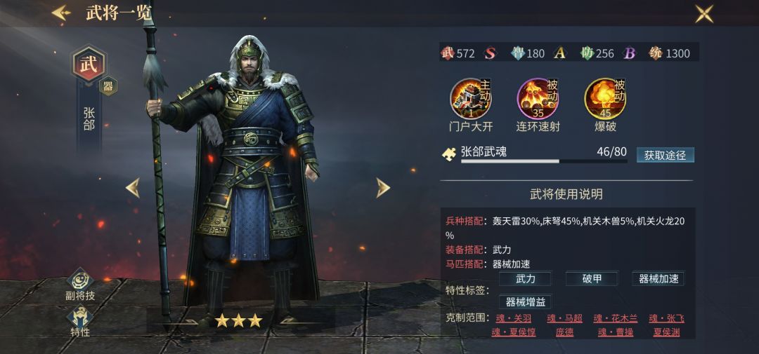 在智力将大行其道的风潮逐渐消退以后,防御将武力将逐步崛起,副将系统的加入,正好给了张郃重新起飞的机会,张郃独特的破防机制加上超高的出手速度加成,让张郃在当前版本重新进入玩家的视野,配合副将夏侯渊的高额刀兵重伤效果,可以瞬秒当前主力严颜和贾诩等武将,是目前最强的器械型武将,当选天梯第十名。