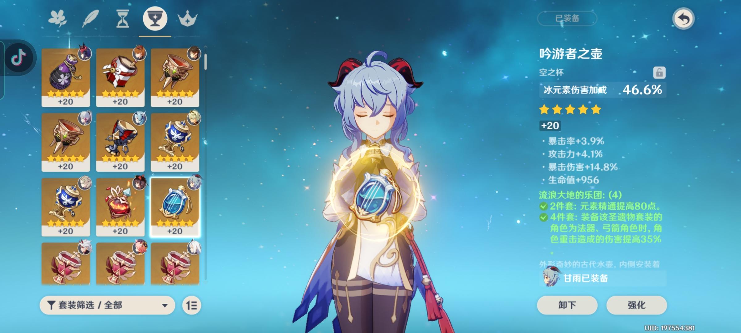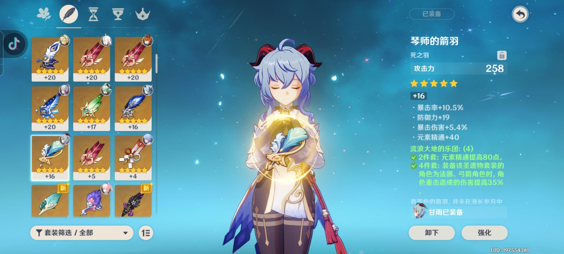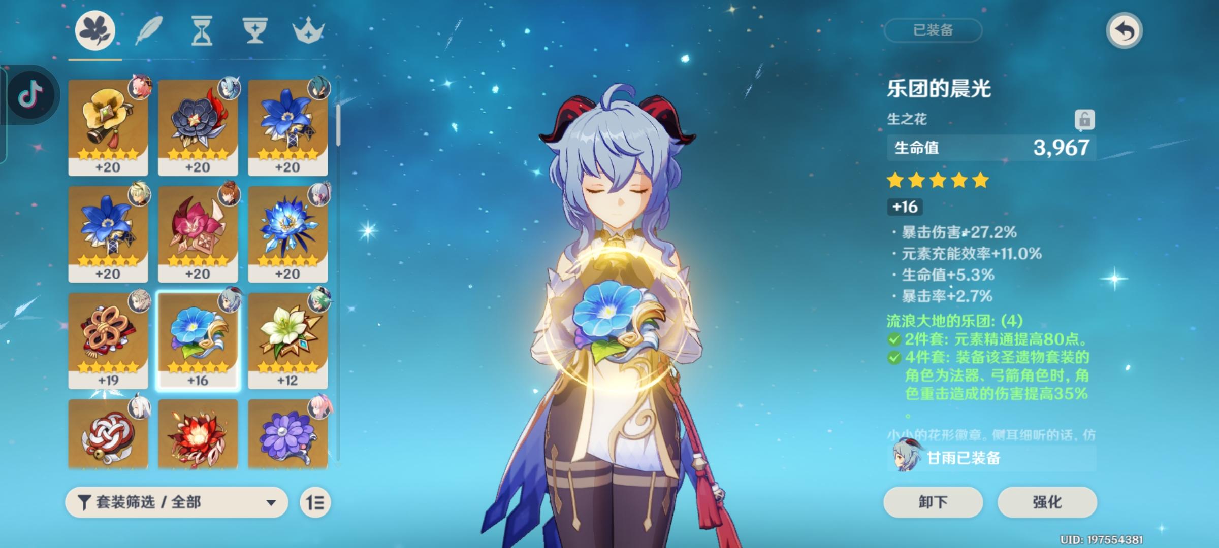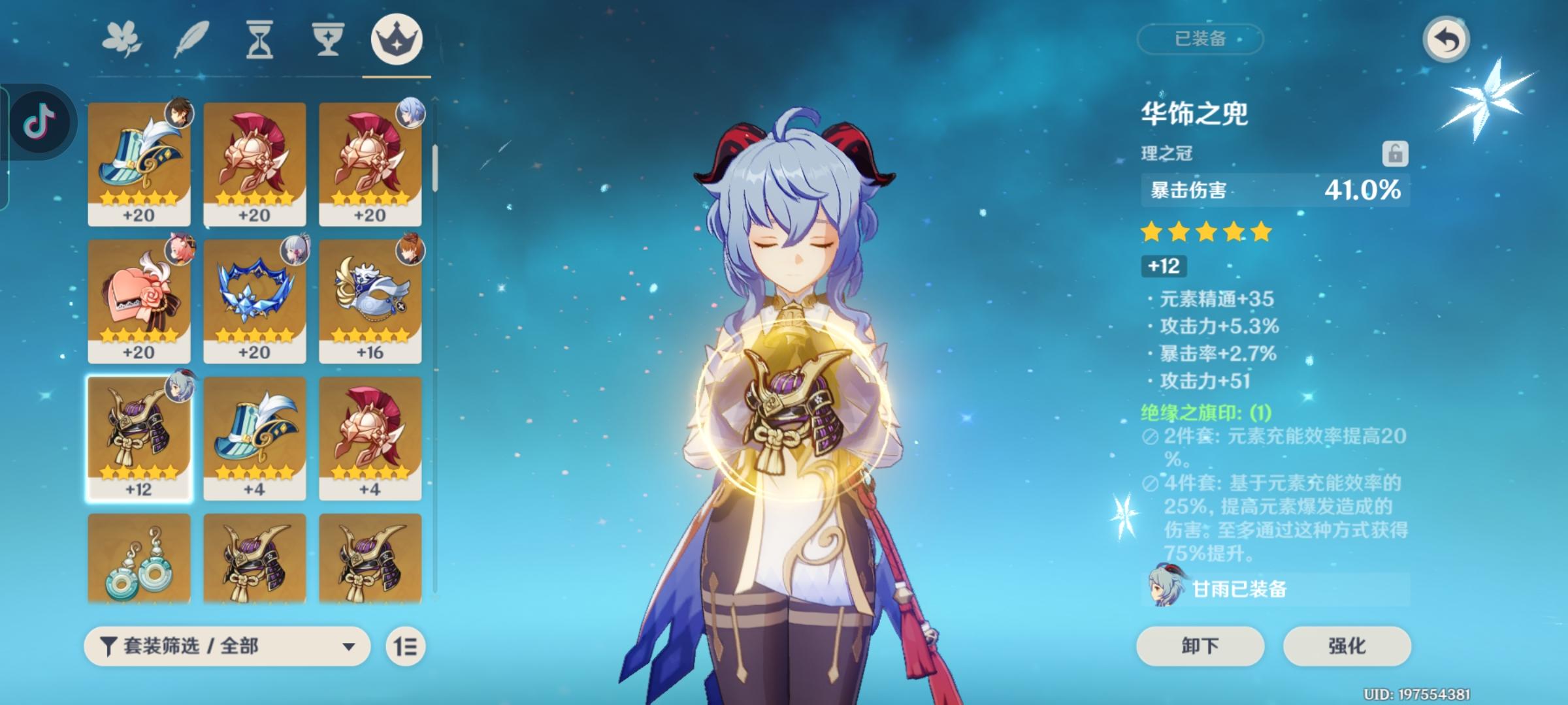 抽到凌华,把甘雨的四冰给了她,甘雨换上四乐团,嗯,这一换一强化还有惊喜呢,缺一个攻击沙,嘻嘻
