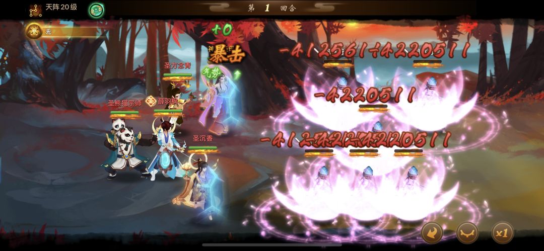 X范围攻击,自身失去宝莲灯【守护】并在敌方空位放置继承自己法攻的宝莲灯,持续4回合,剩余气势40;宝莲灯消失后,沉香解除自身限制回血、回气效果并获得【守护】效果,同时回复生命、20点气势,2点神甲