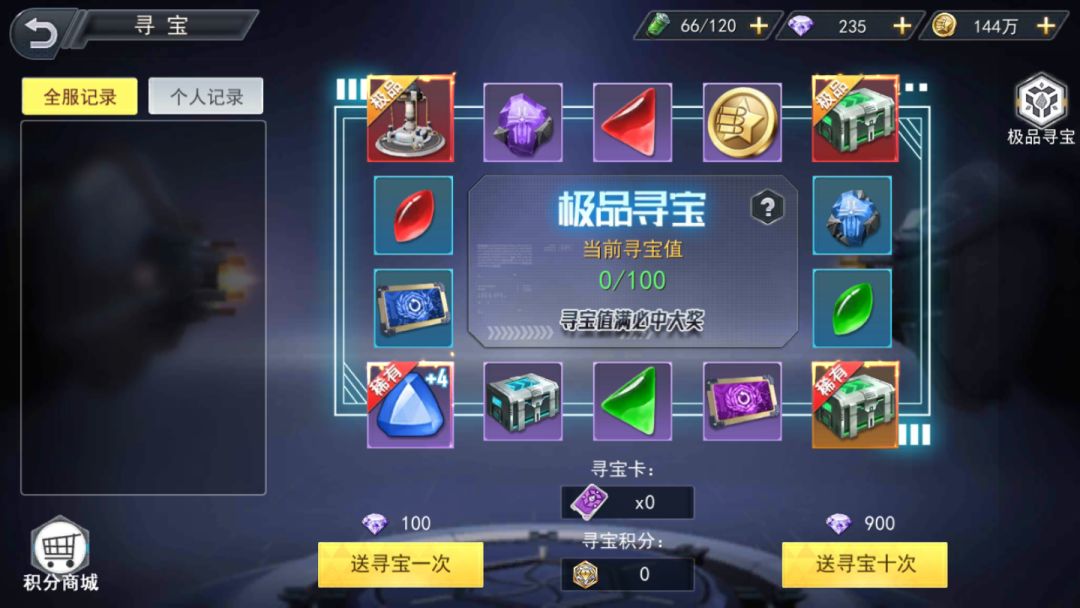 每次寻宝除了获得奖品奖品之外还可以获得寻宝积分,寻宝积分可以在积分商城兑换各种奖励!