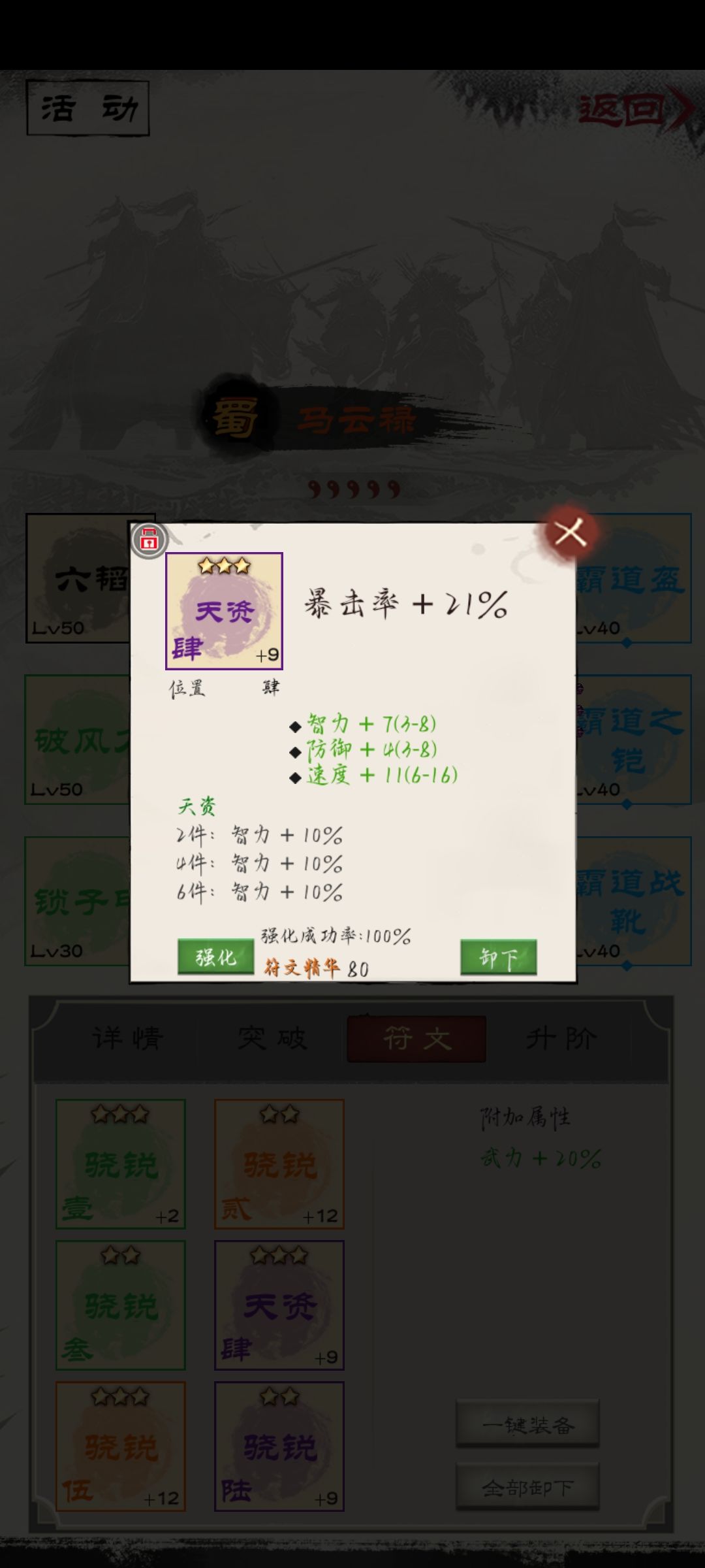 第三,打黄巾的时候,每件符文都要看,有暴击率的一定留。锁住,卖符文的时候不会卖掉。