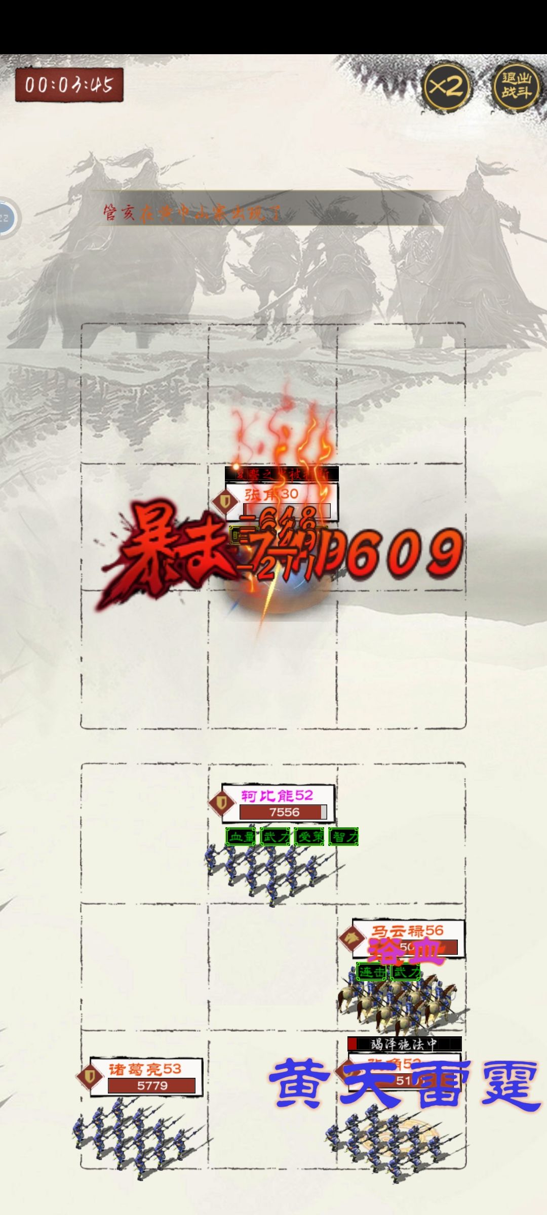 图中是我马云禄41%暴击率的攻击效果,目前一次伤害8500+,所以现在等级是55级。但是刷70级的袁绍,一次没输过。80级的公孙攒完全打不过就是这样一个情况。