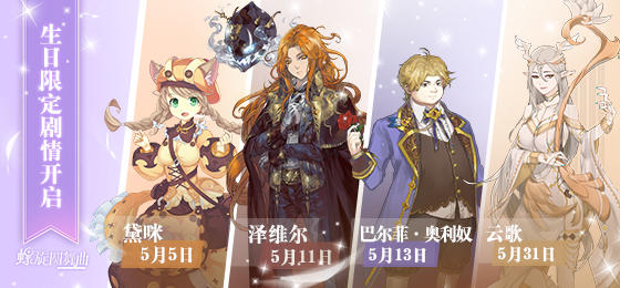 螺旋圆舞曲的小可爱们, 5月份NPC生日预告来啦!在他们生日当天登录游戏即可领取对应任务,体验特殊剧情。完成任务还可领取任务奖励。