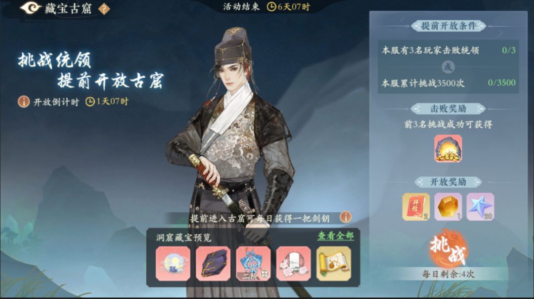 2)如果君卿们想要提前进入古窟,则需要尝试挑战统领·纪英来获得他的认可;