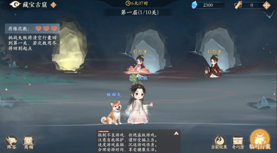 1)古窟内共有5层,每进入一层均需要消耗一把剑钥,每层共有10关,可以根据自身需求选择对应的洞口,