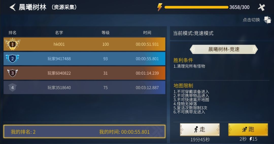 除资源图外的所有地图增加竞速榜,玩家们根据通关(击杀地图内的所有怪物)进行排名,该榜常规情况下不会发放任何奖励,但会与后期开放的活动相辅相成,从让玩家获得收益