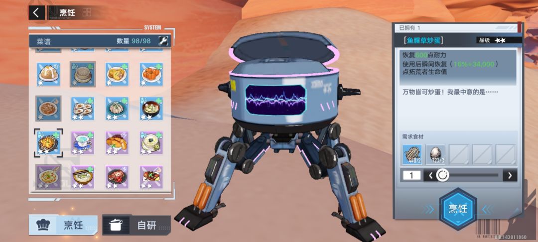 自研投入:辣椒*3肉肉尾巴*3禽类的蛋*3大米*6
