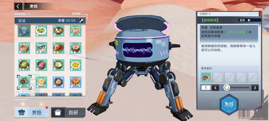 秘制烤肋排:肋排*1蜂蜜*2(折跃门-咸水绿洲附近的盾甲兽有几率出)