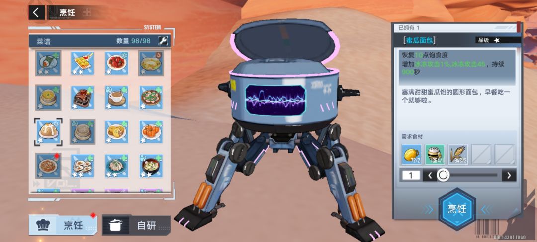 自研投入:大漠甜瓜*6蜂蜜*3霍米基麦*6