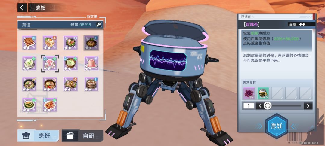 自研投入:玫瑰花瓣*5蜂蜜*10