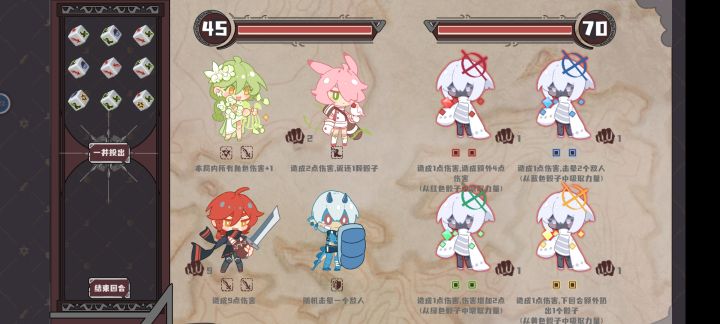优点:队形卡组成型容易,不用考虑过渡牌。中后期持续伤害可以形成不小的爆发,对骰子的总体要求不高,有一个5绿的骰子就能保证稳定的大幅度伤害提升。