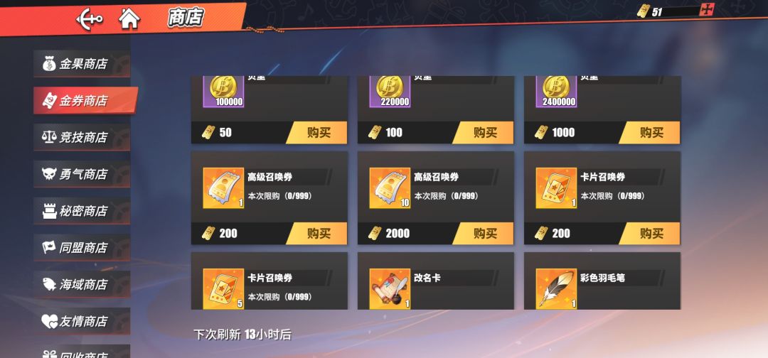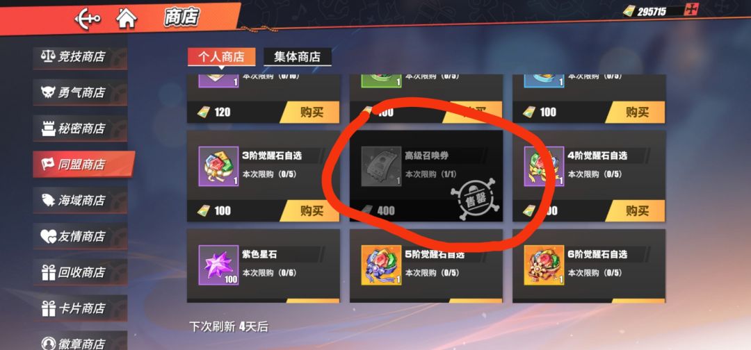 3.同盟商店每周刷新可购买1张,每月按四周计算,可得4张高招。
