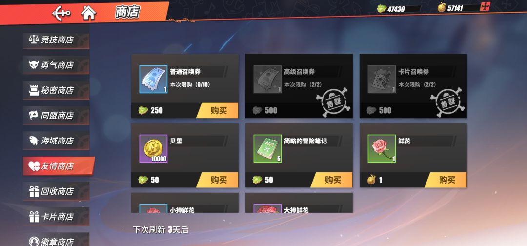 6.友情商店每月刷新2张。