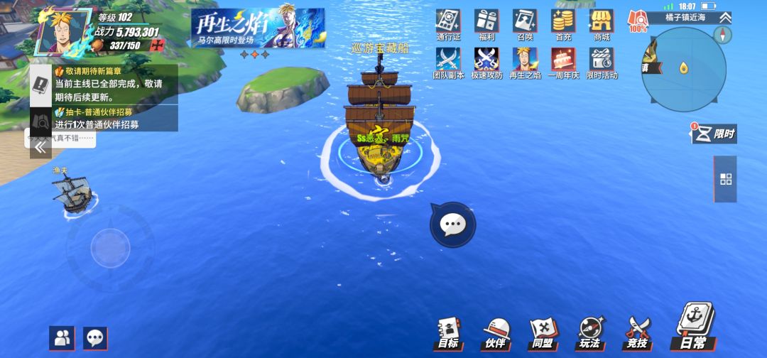 10.每日宝船10金果,每月按30天计算,月可拿300金果。(龙卷风两天刷新一次,大概位置在强敌降临烟鬼附近或者无名海岛,在此不计算。)