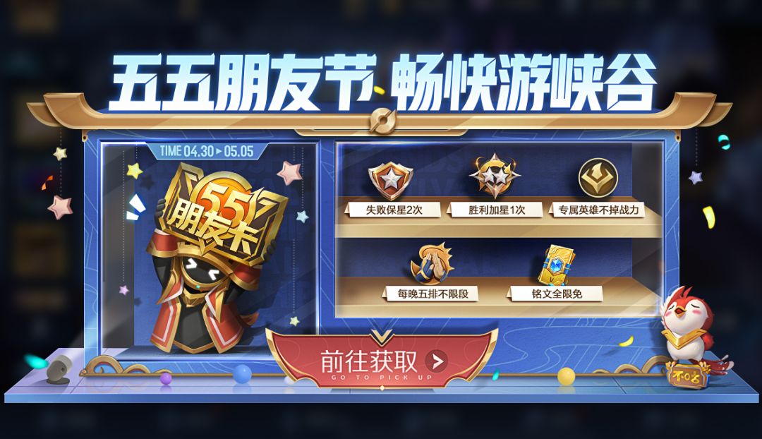 召唤师们好,今年王者荣耀五五开黑节正式升级为五五朋友节!对局福利更是从原有的5月5日一天全面升级为4月30日~5月5日畅玩。快来看看我们给大家带来哪些精彩福利吧!