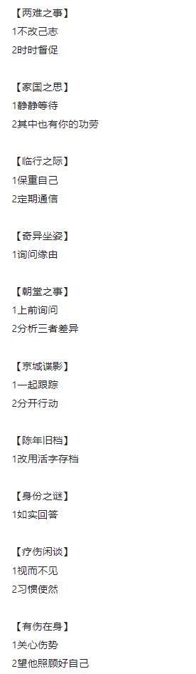 言冰云的性格是冷漠沉静,隐忍机敏。擅长归纳分析和情报追索。一生的信条是一切为了庆国。所以在应对言冰云的时候,一定要分析其内心的想法。