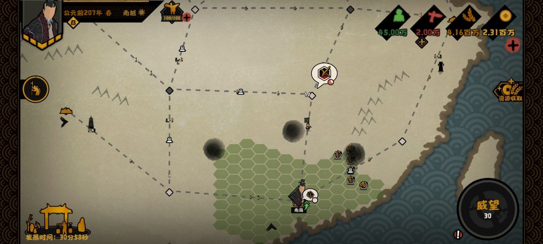 相比于其他国家前期的开疆扩土,南越可以说是相当滋润,发育周期极快。