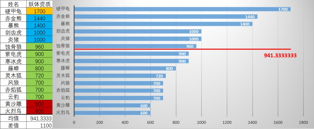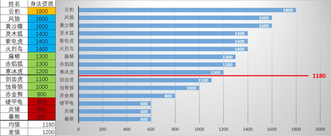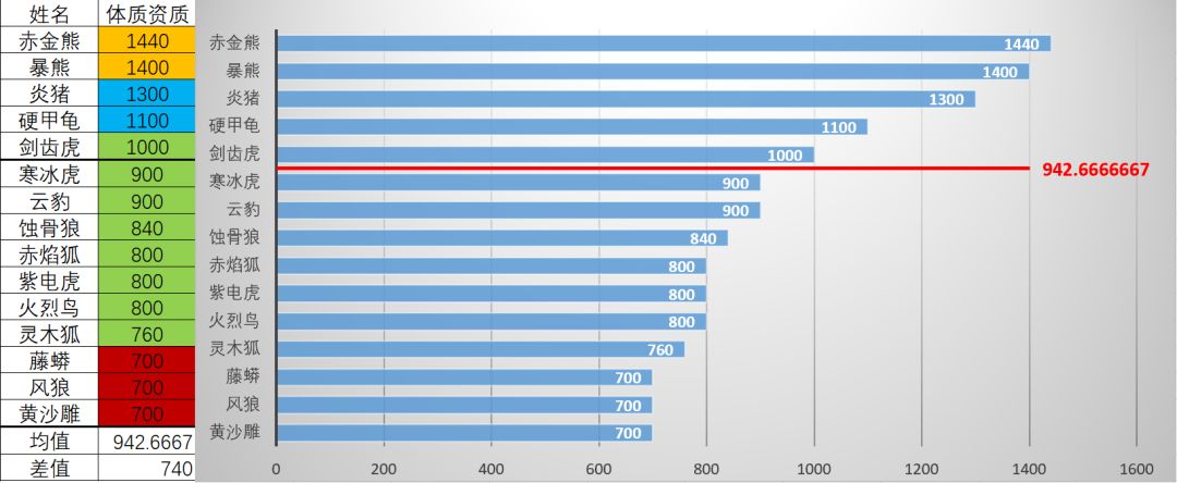 较高的均值让多数宠物都处于不及格的状态,因为我们知道,血量主要是依靠体质资质撑起来的。