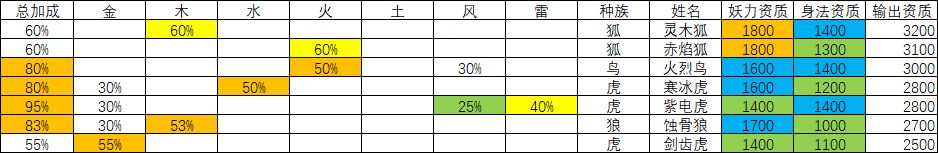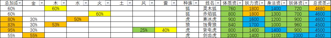 再结合妖力与身法综合排名,排名表和总资质排名相差无几