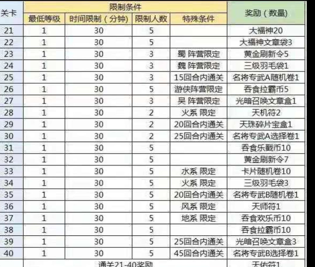 【图7是21-40关的要求和奖励,目前国服还没开放,大家可以根据奖励未雨绸缪一下】