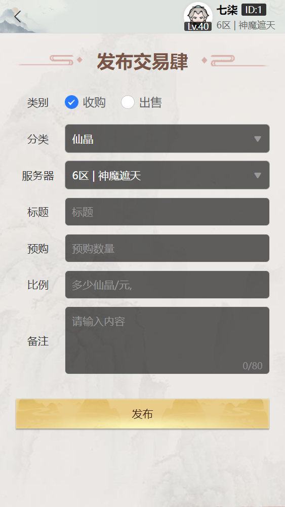 b、出售:8开头+平台ID,如我的平台ID为1,价格就填写为80001;