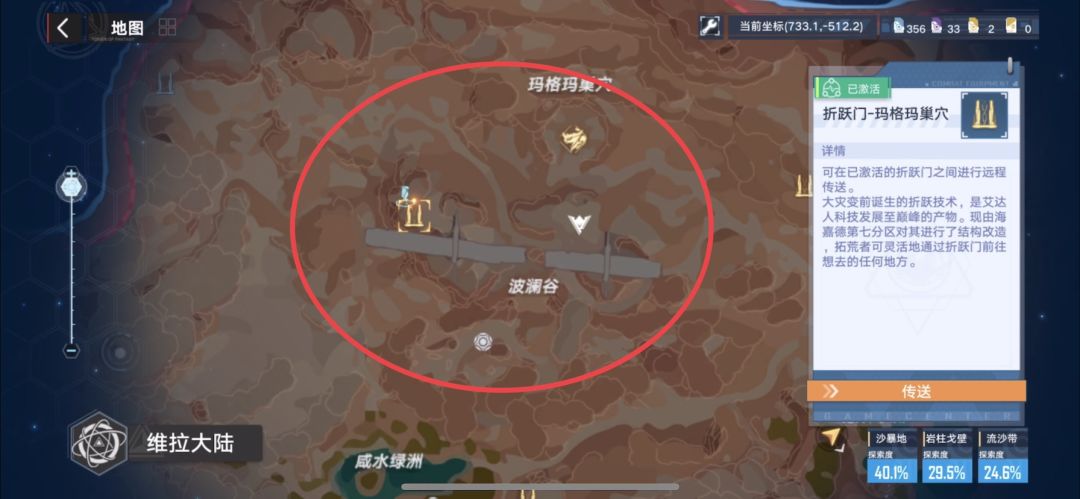 然后在最下面的流沙带中,我们飞起来,然后去流沙的中心处,我们会发现一个不太明显的漩涡,在漩涡中心我们会沉到下面的一个洞窟中,在里面我们可以采集到甜菜根。